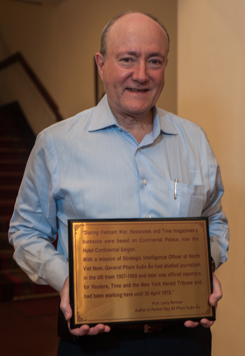 Nội dung bảng đồng lưu niệm ghi: “Trong cuộc chiến tranh Việt Nam, khách sạn Continental Sài Gòn, trước đây có tên gọi là Continental Palace từng là trụ sở của các tạp chí danh tiếng Time và Newsweek. Với sứ mệnh nhà tình báo chiến lược, Tướng Phạm Xuân Ẩn đã đi học báo chí ở Mỹ và sau đó là nhà báo chính thức của hãng tin Reuters, tạp chí Time và New York Herald Tribune, từng hoạt động tại đây cho đến ngày 30.4.1975”. GS. Larry Berman là nhà sử học, giáo sư danh dự tại Trường Đại học California, hiện là Trưởng khoa đào tạo nhân tài ưu tú, Trường Đại học quốc gia Georgia (Mỹ).